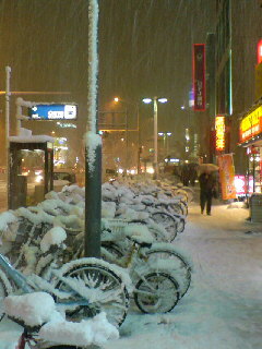 その 美しい雪景色は・・・ 雑記 X Bluesky Misskey はてブ LINE コピー 2005.12.22 でっかい大雪です。 12/18~19の記録的大雪(12/19 8:00 名古屋23cm)のときよりも強力な寒波が来ています。 今朝は見えていた路面も真っ白に。明日明後日も雪らしいので、気をつけないと。 写真は、今夜21:00過ぎの本山駅付近です。